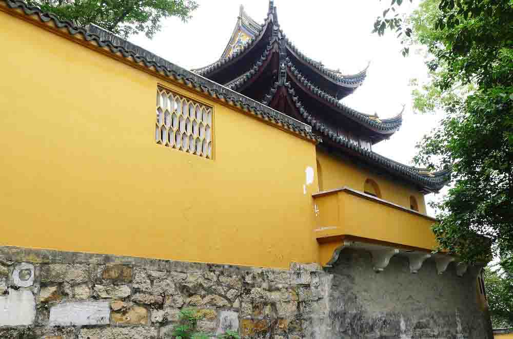 沿著山路往上走,大概花費(fèi)1個(gè)小時(shí)左右的時(shí)間從靈巖山下到靈巖寺,黃色的外墻,幽靜。